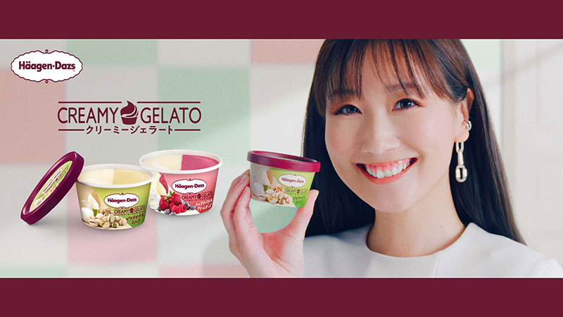 ハーゲンダッツの新商品ミニカップ CREAMY GELATO(クリーミー ジェラート)『ピスタチオ&ミルク』と『ミックスベリー&クリームチーズ』は6月28日(火)より期間限定販売されるので、大塚 愛のダンスに合わせて2種類のフレーバーをねりねりしながら「SMILY2」も是非チェックしてみよう。