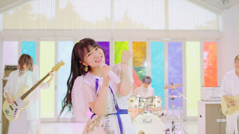 鈴木より『今回のMVは「Magic×Color」というタイトルにぴったりな、とにかくカラフルで綺麗なスタジオで撮影しました!セットと反対に、衣装は白が多く使われたワンピースだったので、光によって衣装の色が変わるのがお気に入りポイントです!そして鈴木杏奈初、ガールズバンドの皆さんをバックに撮影もしました!まるで一緒にライブをしているみたいで本当に楽しかったです!私達の想いが詰まった素敵なMVになっています。是非たくさん観てくださいね!』と撮影を振り返るコメントも到着しました。