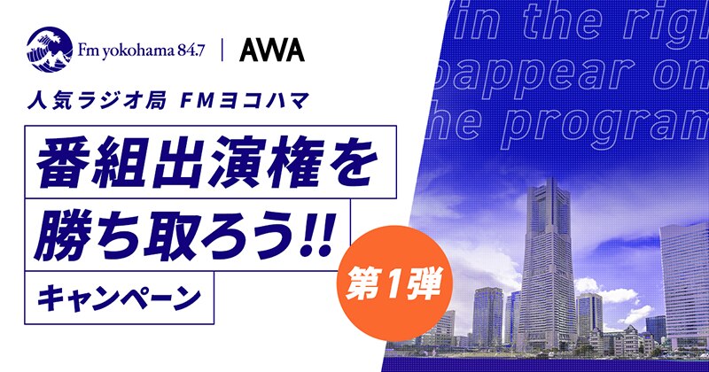AWAは、FMヨコハマで放送されるAWAコラボ番組への出演をかけた、『人気ラジオ局「FMヨコハマ」番組出演権を勝ち取ろうキャンペーン』のエントリーを開始いたしました。