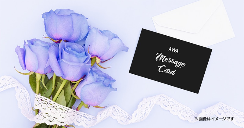 期間中お気に入り配信者に累計500フラワー以上投げたリスナーの方全員のメッセージをギフトカードにして、配信者に花束と一緒にAWAがお届けします。贈ったフラワーチャットの色に応じて、配信者に送られる花束の色が変わります。