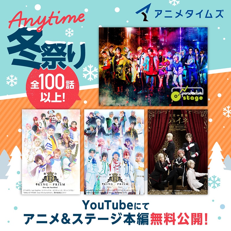 アニメタイムズ公式YouTubeチャンネル「Anytime冬祭り」開催!後継作で話題の「頭文字D」シリーズや「キンプリ」ステージ本編など大人気アニメ全100話以上を期間限定で無料公開!