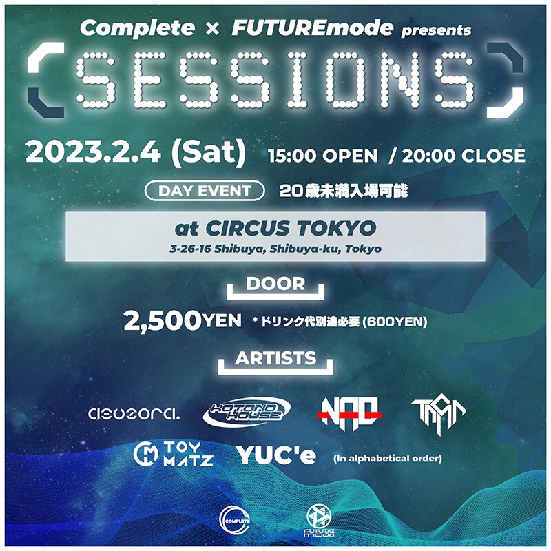 気鋭のプロデューサー陣を抱え数々の注目イベントを開催する「Complete」とタッグを組み、新たなイベント“SESSIONS”を2月4日(土)に渋谷・CIRCUS TOKYOで開催する。