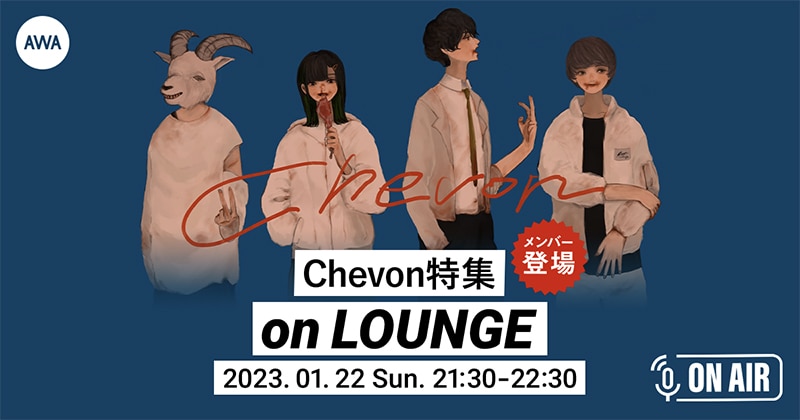 2023年1月22日(日) 21:30~22:30の1時間に渡り、AWAのオンライン空間「ラウンジ」で、Chevonのメンバーが音声とチャットで登場するAWAラウンジを開催いたします。